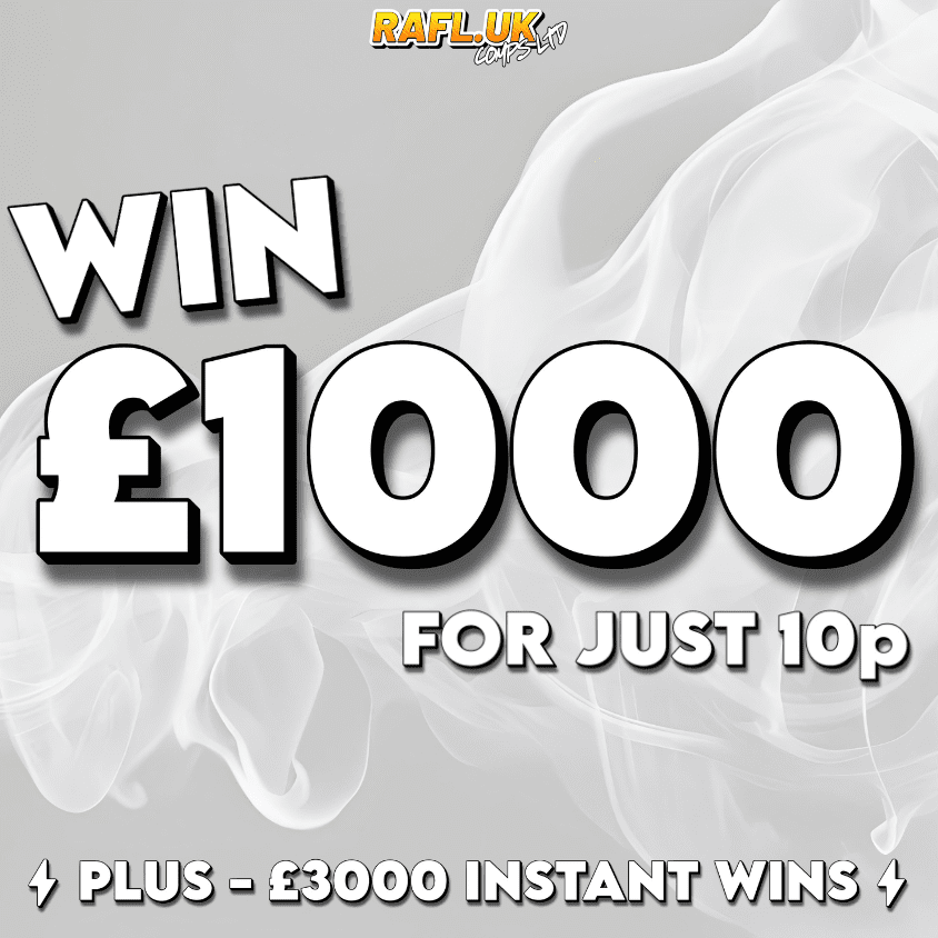 The live draw will take place on the RAFL UK COMPS LTD Facebook page using Google’s random number generator to select the winning ticket number from all Entrants.Any bonuses added, including our LevelOne bonuses, may be drawn using any method of our choosing. This includes but is not limited to the use of third-party websites such as online-stopwatch.com, commentpicker.com, wheelofnames.com and pickerwheel.com.