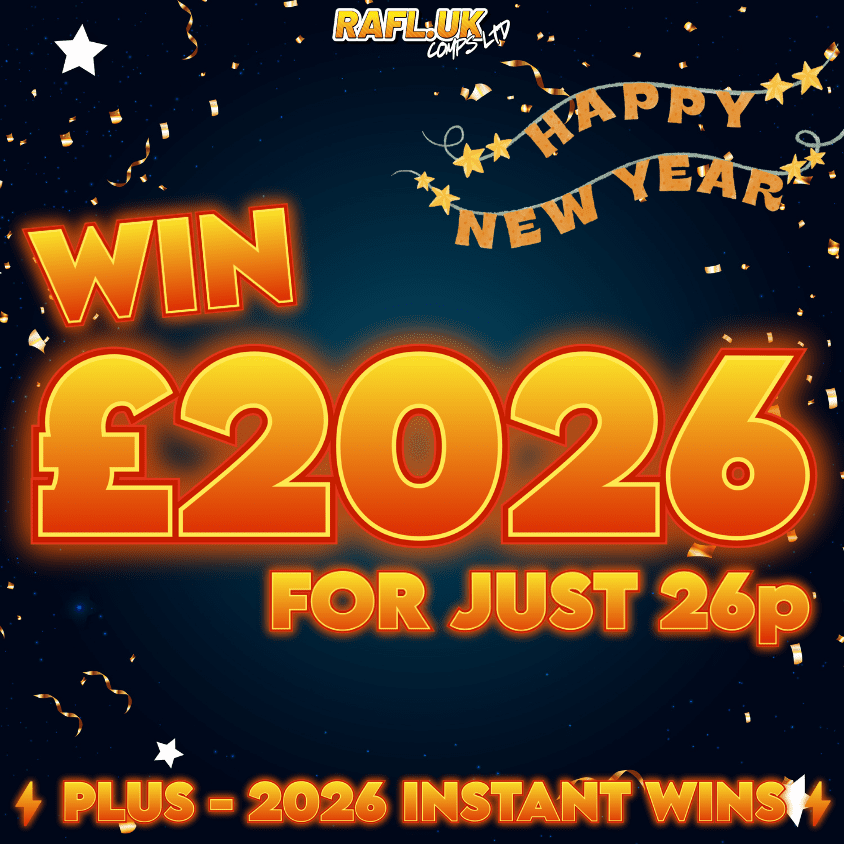 The live draw will take place on the RAFL UK COMPS LTD Facebook page using Google’s random number generator to select the winning ticket number from all Entrants.Any bonuses added, including our LevelOne bonuses, may be drawn using any method of our choosing. This includes but is not limited to the use of third-party websites such as online-stopwatch.comcommentpicker.comwheelofnames.com and pickerwheel.com.