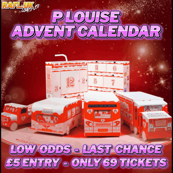 The live draw will take place on the RAFL UK COMPS LTD Facebook page using Google’s random number generator to select the winning ticket number from all Entrants.Any bonuses added, including our LevelOne bonuses, may be drawn using any method of our choosing. This includes but is not limited to the use of third-party websites such as online-stopwatch.com, commentpicker.com, wheelofnames.com and pickerwheel.com.