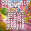 EACH CAR IS GUARANTEED A PRIZE BASED ON THE RACE FINISH POSITION