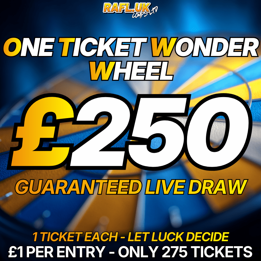The live draw will take place on the RAFL UK COMPS LTD Facebook page using Google’s random number generator to select the winning ticket number from all Entrants.Any bonuses added, including our LevelOne bonuses, may be drawn using any method of our choosing. This includes but is not limited to the use of third-party websites such as online-stopwatch.comcommentpicker.comwheelofnames.com and pickerwheel.com.