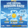 During the live draw, 1,000 virtual penguins race it out on screen. Your tickets give you entries into the race, and when the penguins cross the line, the prizes are decided live.